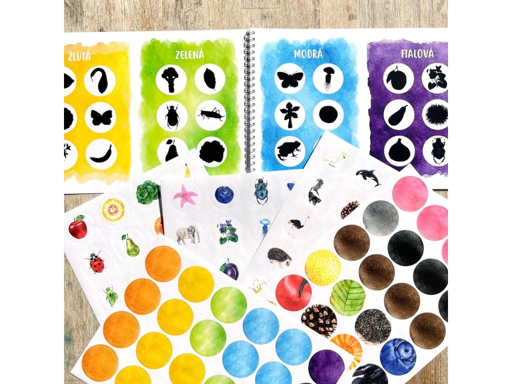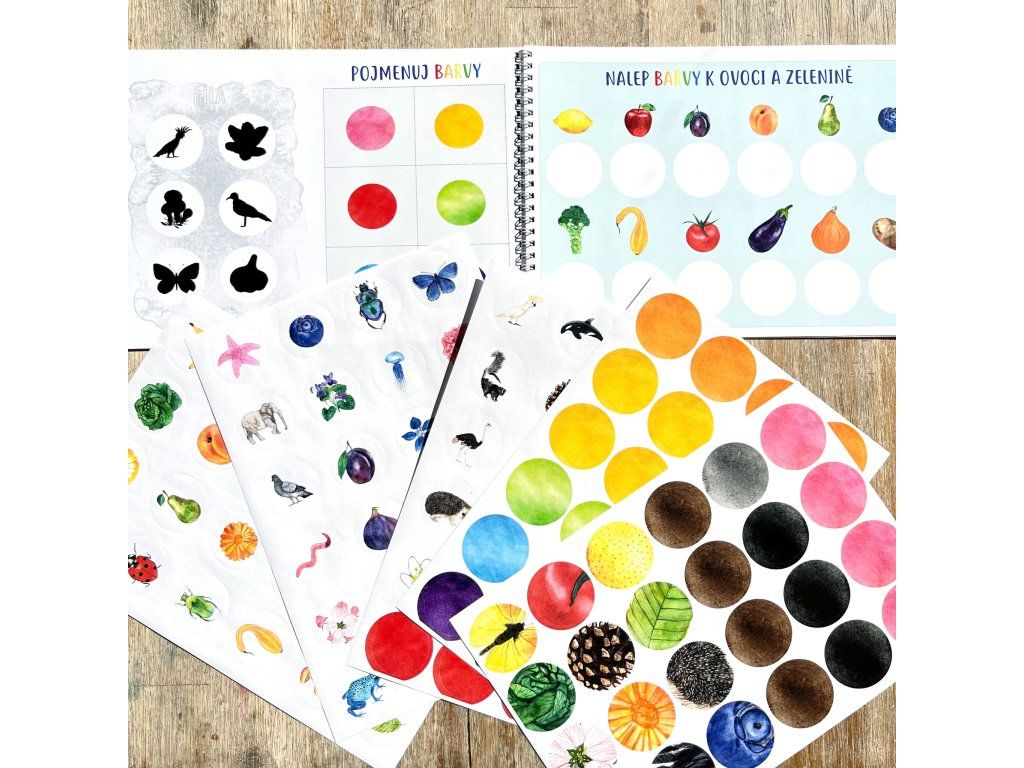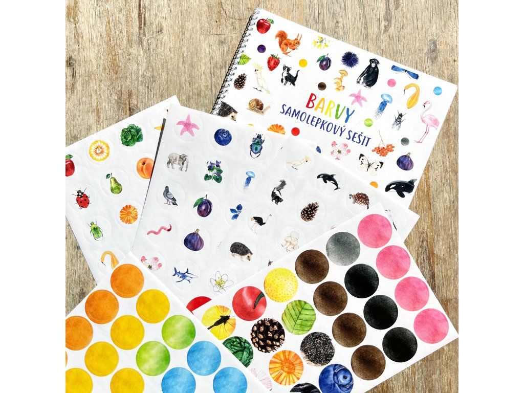 Samolepkovvý sešit plný barev - společník na učení barev.