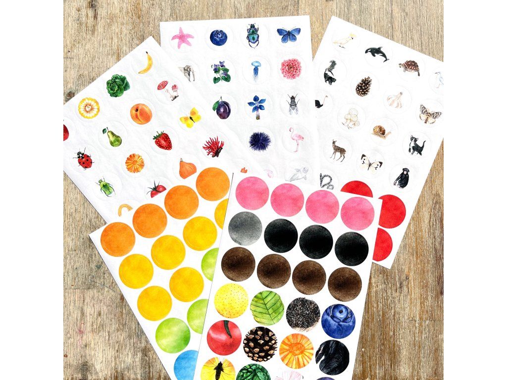Součástí tištěné verze jsou 4 archy samolepek. V případě koupě PDF si samolepky můžete vytisknout na samolepící papír.