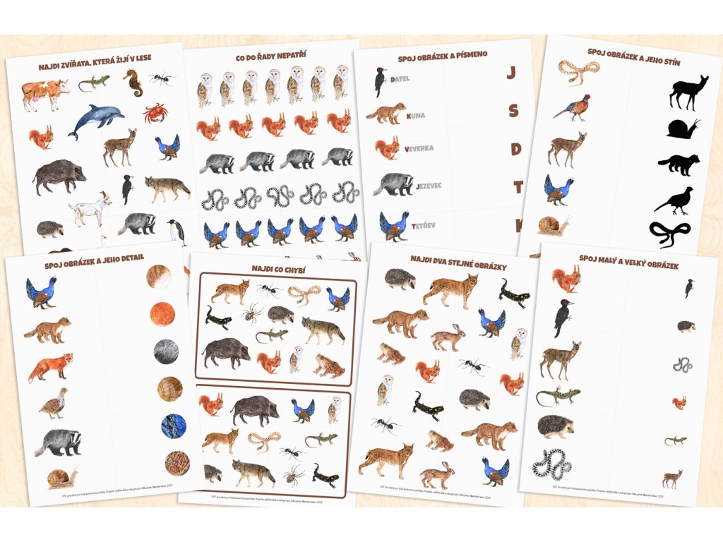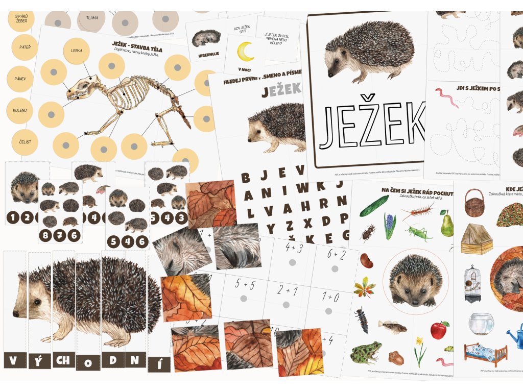 Les + Ježek - balíček - 25 výukových aktivit + výzdoba + stezka (tiskovina v jednotlivých listech)
