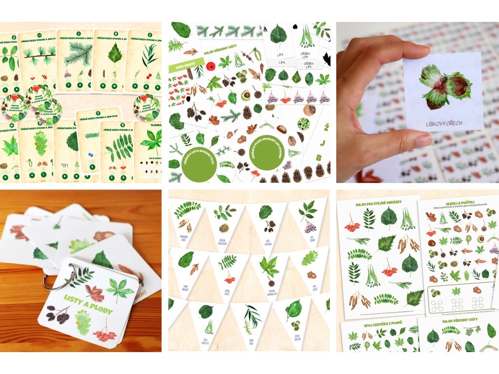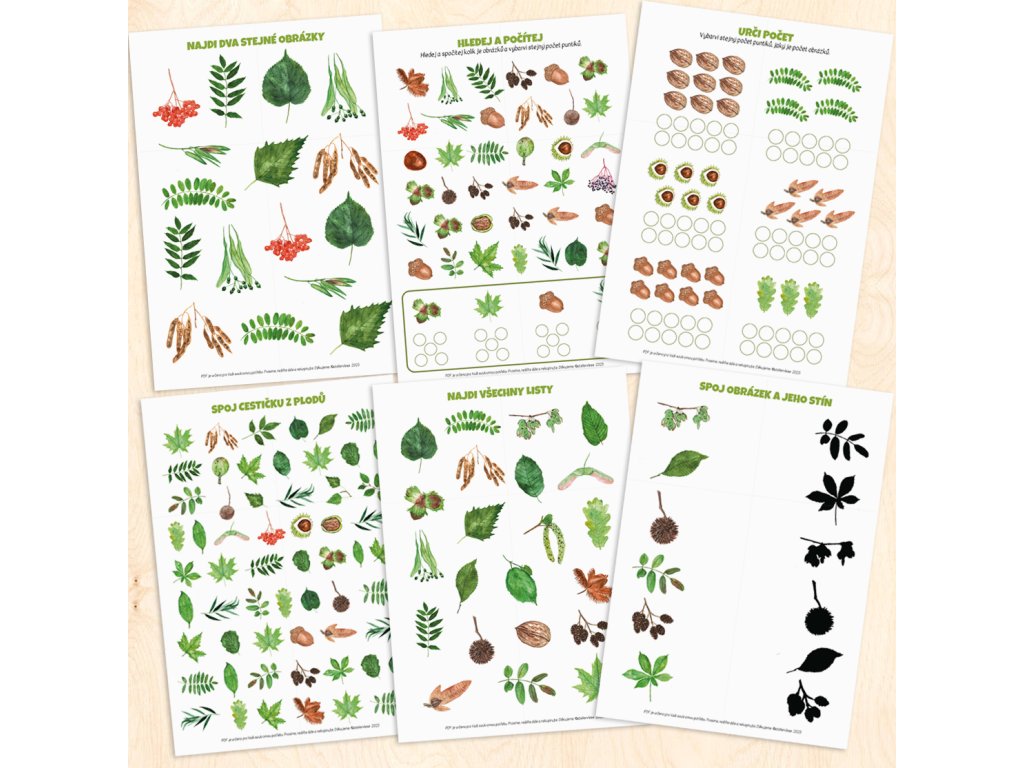 Zábavné vzdělávací aktivity na téma listy a plody. S aktivitami se děti naučí poznávat české listy a plody a zároveň rozvíjejí grafomotoriku, jemnou motoriku, poznávání písmen, číslic, paměť či postřeh.