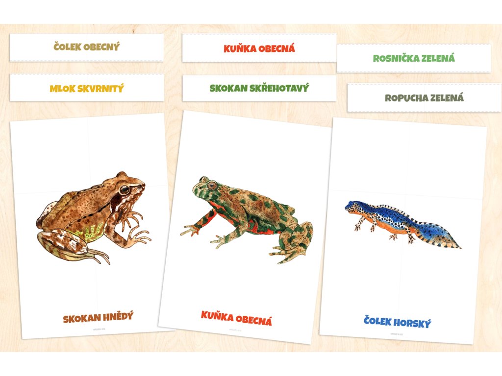 12 obojživelníků na demostračních obrázkových kartách A4.