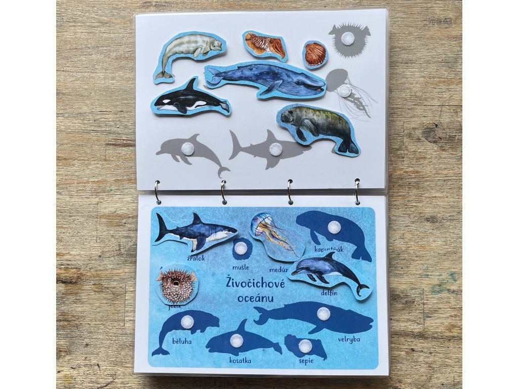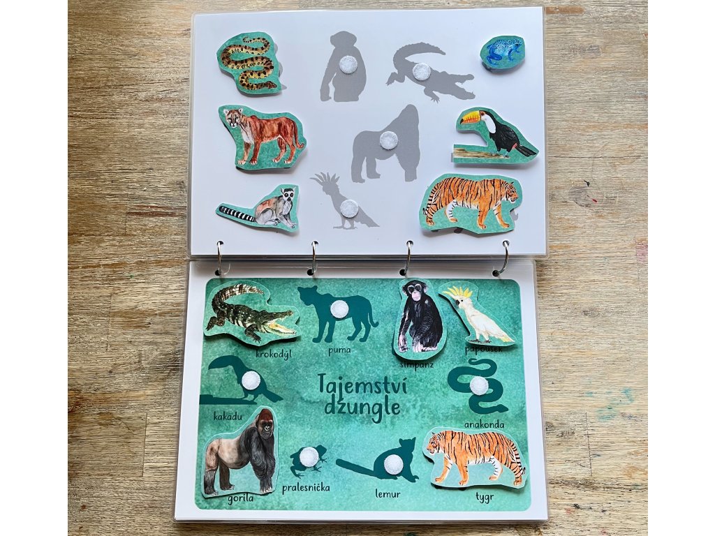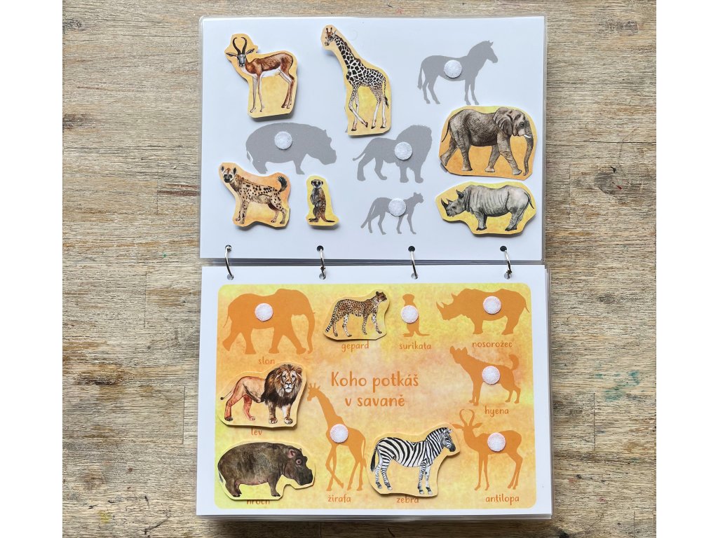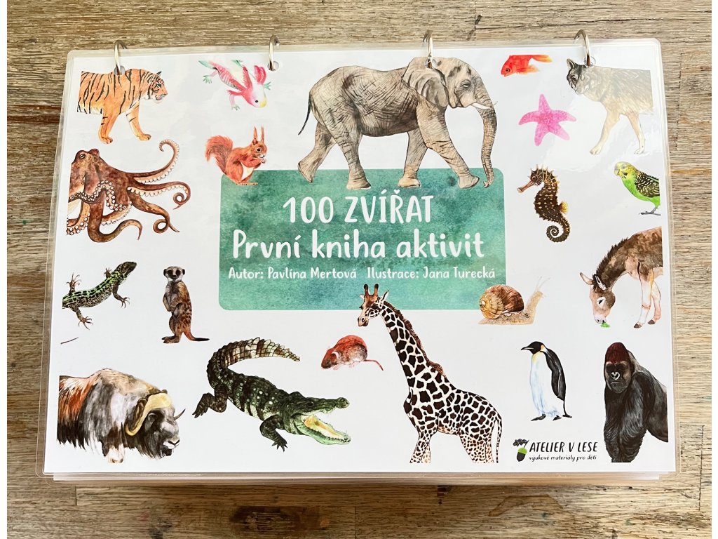 Interaktivní kniha aktivit 100 zvířat pro rozvoj jemné motoriky, slovní zásoby, spolupráce, postřehu, paměti a logického myšlení.