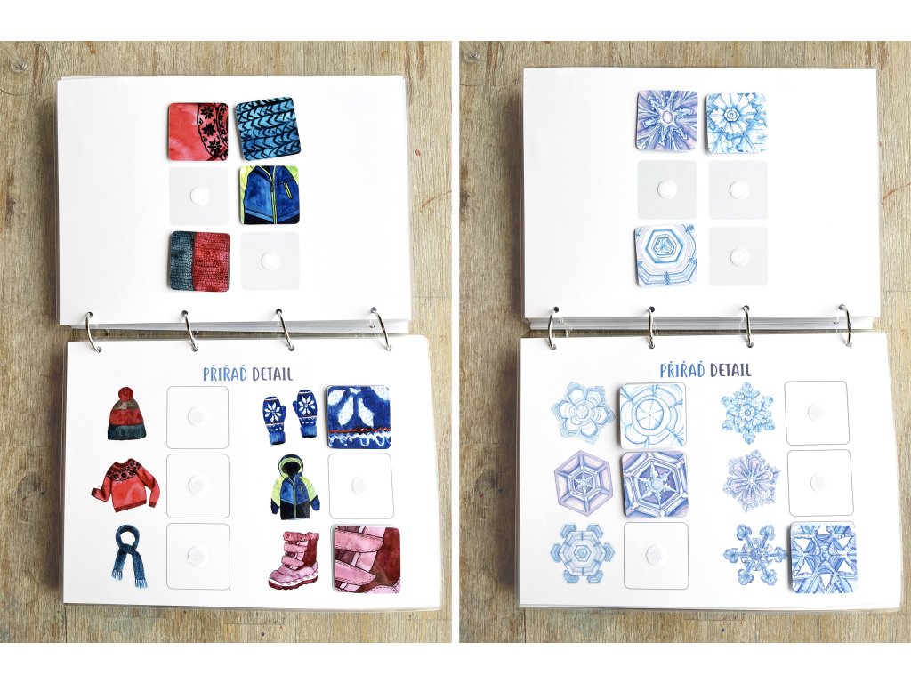 Interaktivní kniha aktivit na téma ZIMA pro rozvoj jemné motoriky, postřehu, paměti a logického myšlení.