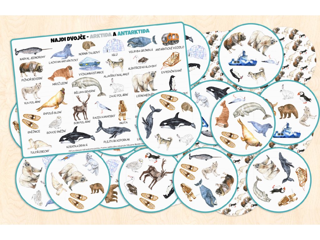 Verze se 6 obrázky na kartě. Celkem 31 karet s obrázky na téma Arktida a Antarktida.