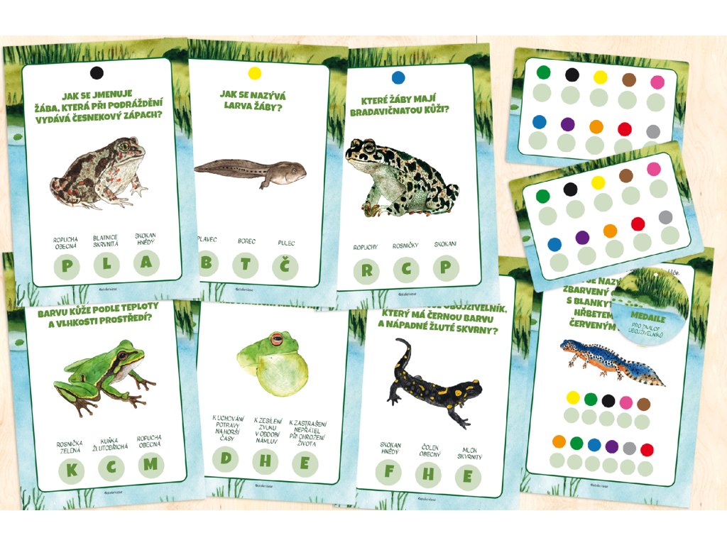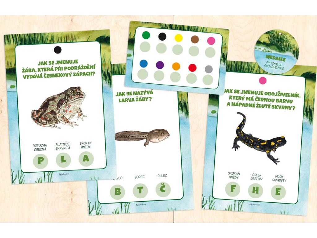 Děti se seznámí s deseti obojživelníky a naučí se jejich názvy. Na jednotlivých stanovištích se sbírají písmena do tajenky, která je na posledním stanov